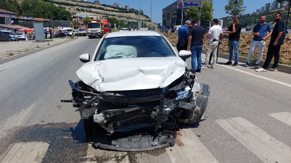 Samsun'da polis aracının, üsteğmenin kullandığı araçla çarpışması sonucu meydana gelen trafik kazasında, 2 polis, 1 üsteğmen yaralandı.