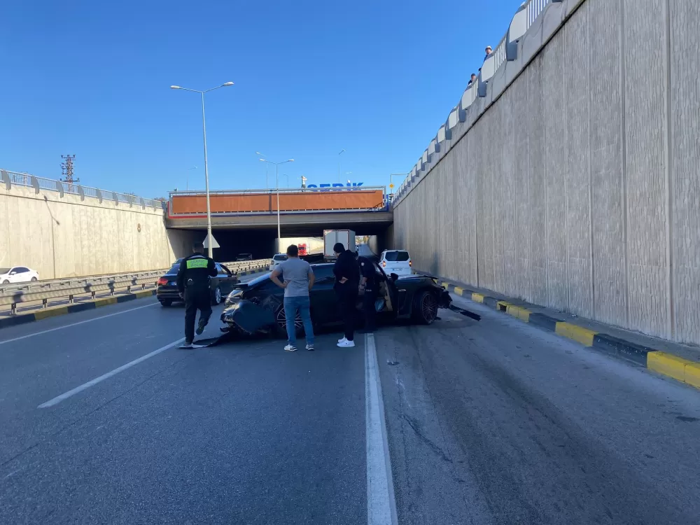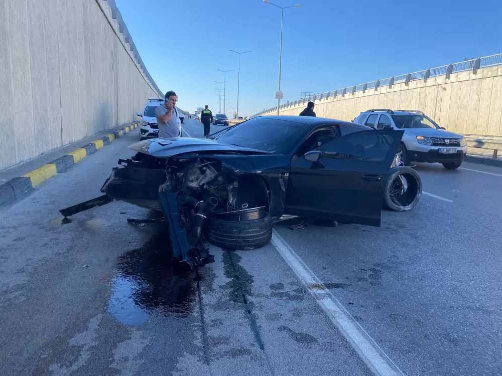 Porsche otomobil önce bir araca sonra alt geçit duvarına çarptı 1 yaralı