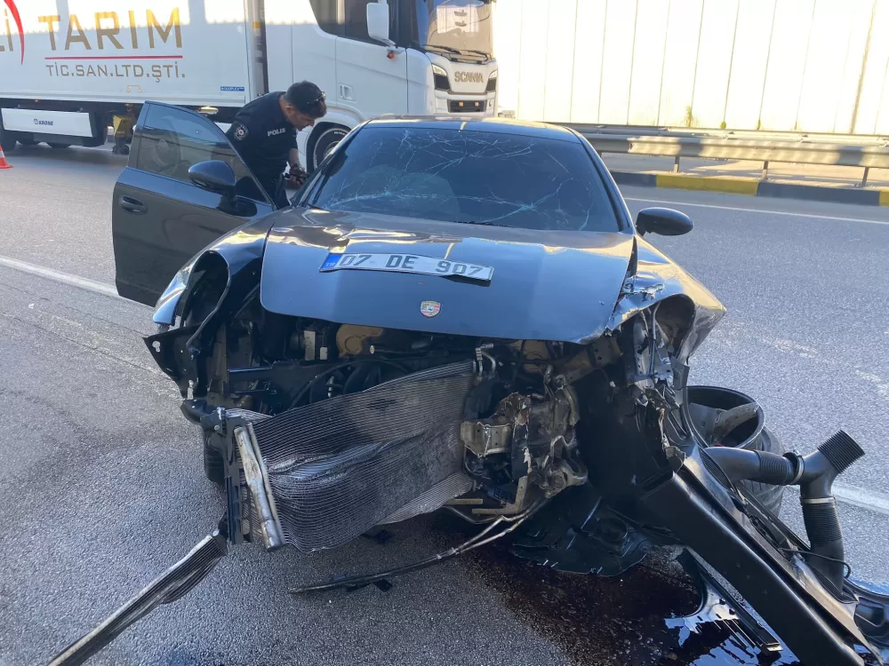 Kaza, bugün saat 14.00 sıralarında Antalya–Alanya D400 Karayolu Dikmen Alt Geçidi’nde meydana geldi. Edinilen bilgilere göre, Davut E. yönetimindeki 07 DE 907 plakalı Porsche marka otomobil, sürücüsünün direksiyon hâkimiyetini kaybetmesi sonucu önce aynı yönde seyir halinde olan R.A. idaresindeki 07 ABG 866 plakalı otomobile çarptı. Çarpmanın etkisiyle savrulan araç, alt geçidin duvarlarına çarparak durabildi. Kazada otomobil sürücü Davut E. yaralandı. Lüks otomobil ise hurdaya döndü.