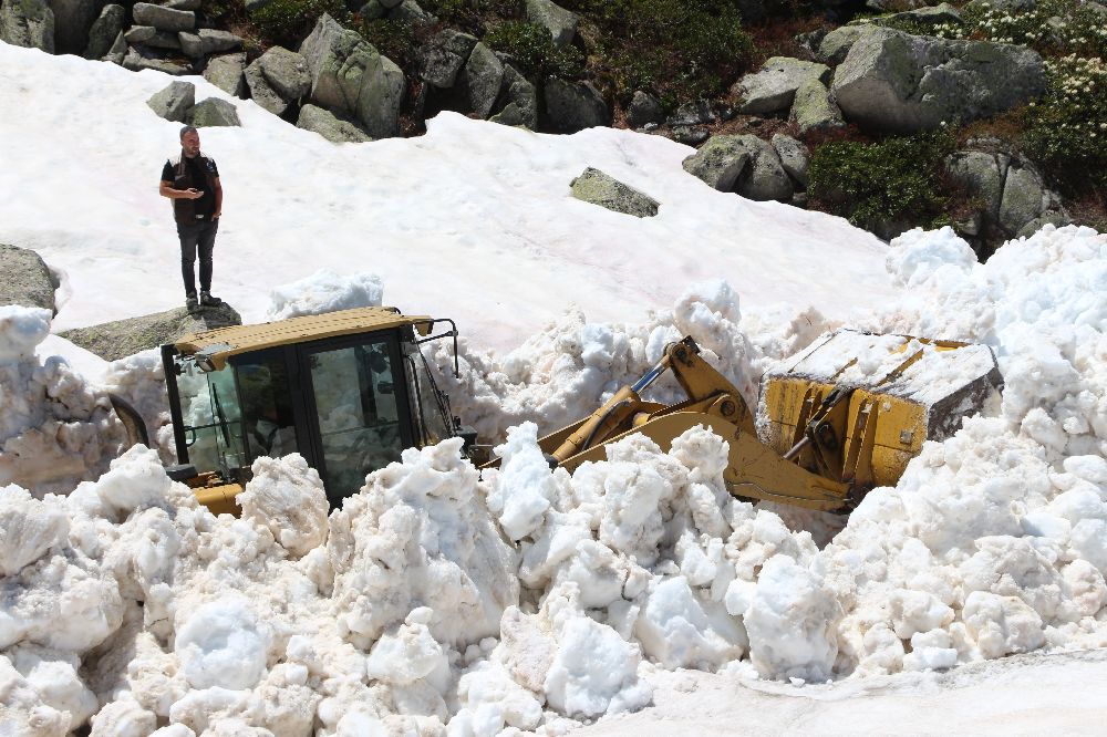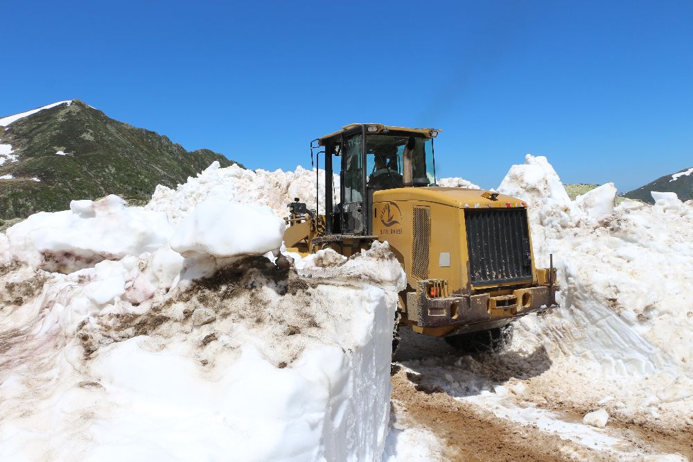 Rize'nin yüksek kesimlerinde kış mevsiminde düşen ve Haziran ayının sonuna gelinmesine rağmen henüz kalkmayan çığlar nedeniyle ulaşıma kapalı olan yollar teker teker açılıyor.