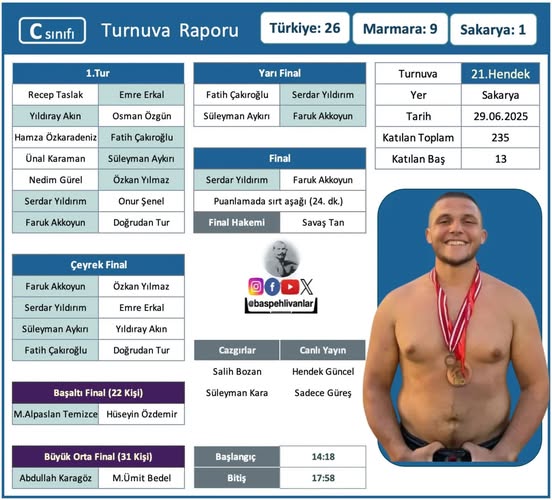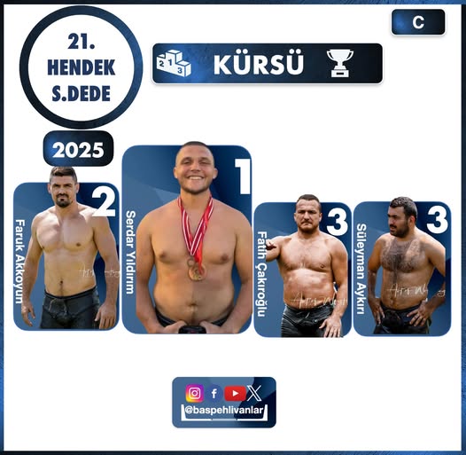 Finalde rakibini puanlamada sırtüstü yenerek galip gelen Serdar Yıldırım, 24 dakikalık zorlu mücadele sonunda bu sezonun ilk başpehlivanlık unvanını kazandı. Turnuvayı ikinci sırada Faruk Akkoyun, üçüncülük kürsüsünü ise Fatih Çakıroğlu ve Süleyman Aykırı paylaştı.
