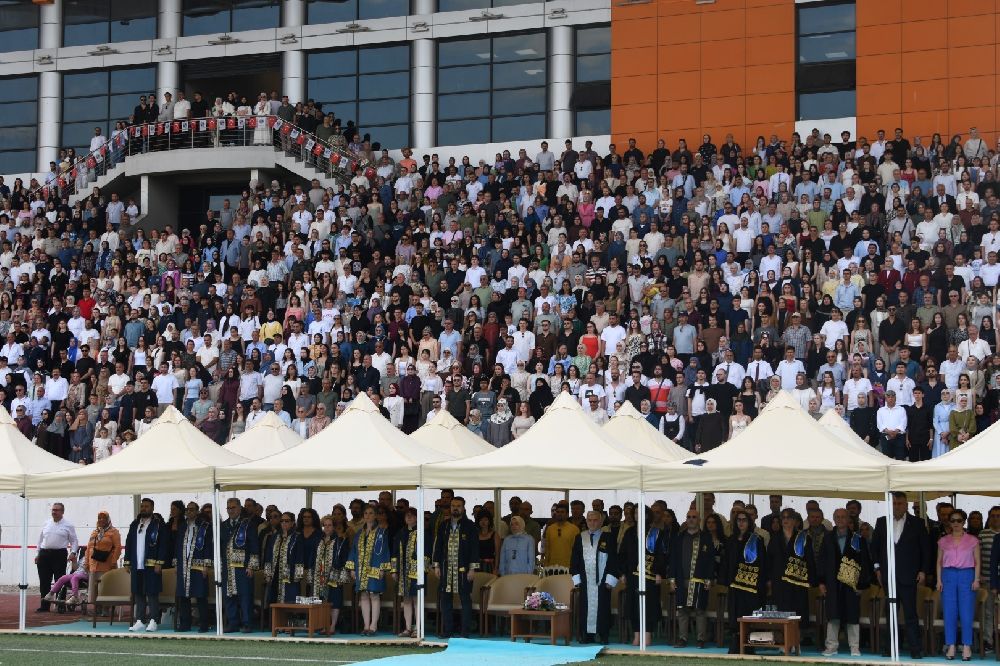 Eğitimden sağlığa, sanattan ilahiyata kadar farklı fakültelerde düzenlenen törenlerde binlerce öğrenci mezuniyet belgelerini alarak meslek hayatına ilk adımlarını attı. Rektörlük, fakülte dekanlıkları, akademik kadro, öğrenci yakınları ve protokol üyelerinin katılımıyla gerçekleştirilen törenler, renkli görüntülere sahne oldu. Rektör yardımcıları, fakülte dekanları, akademisyenler, sektör temsilcileri ve ailelerin katılımıyla gerçekleşen törenlerde öğrenciler, yemin ederek keplerini havaya fırlattı. Her bir fakülte töreninde, geleceğe dair umut ve kararlılık mesajları öne çıktı. Kortej yürüyüşü ile başlayan etkinlik, protokol konuşmaları ve dereceye giren öğrencilere ödüllerinin verilmesi ile devam etti. Tören, öğrencilerin mezuniyet yemininin ardından keplerini fırlatması ile sona erdi.