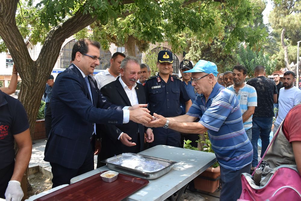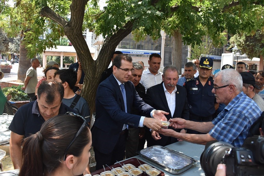 Aşure hayrına Kaymakam Ali Güldoğan, Belediye Başkanı Mazlum Nurlu, İlçe Emniyet Müdürü Burhan Demirkıran, İlçe Jandarma Komutanı Binbaşı Doğukan Karaaslan, Ticaret ve Sanayi Odası Başkanı İbrahim Yüksel, Esnaf ve Sanatkarlar Kredi ve Kefalet Kooperatif Başkanı Erdal Tunca, oda ve dernek başkanları, kurum müdürleri, gaziler, şehit aileleri ile vatandaşlar katıldı.
