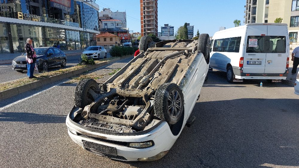 Kaza, Canik ilçesi Yeni Mahalle Şehit Mesut Birinci Caddesi'nde meydana geldi. Edinilen bilgiye göre, Tülay A. idaresindeki 55 AOE 372 pkakalı otomobil, direksiyon hakimiyetinin kaybedilmesi sonucu yoldan çıkarak karşı şeride geçti. Otomobil, Ahmet K.'nin kullandığı 55 AFG 55 plakalı otomobile çarpıp yol ortasına takla atarak ters döndü. Kazada yaralanan otomobil sürücüsü, özel bir hastaneye kaldırıdı.