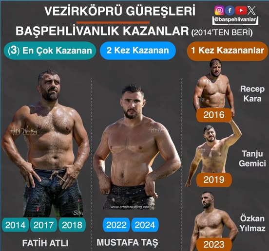 Organizasyonun geçmiş yıllardaki başpehlivanları da dikkat çekiyor. 2014 yılından bu yana tutulan kayıtlara göre: