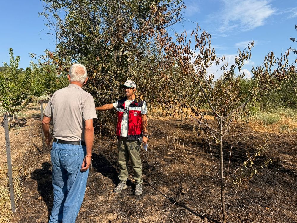Şaphane İlçe Tarım Müdürlüğü teknik personelleri tarafından Karaağıl Mahallesi Kayraklı mevkiinde 15 Temmuz 2025 tarihinde meyve bahçesine yıldırım düşmesiyle çıkan yangın sonrası hasar tespit çalışması gerçekleştirildi.