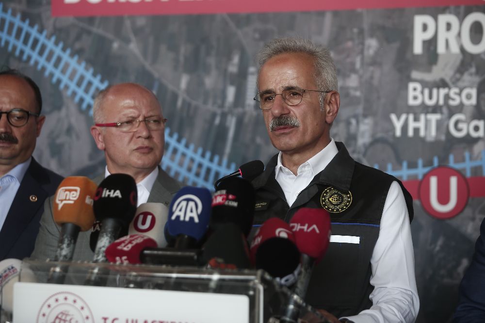 Ulaştırma ve Altyapı Bakanı Abdulkadir Uraloğlu, Bursa'da yapım aşamasındaki Yüksek Hızlı Tren (YHT) Garı’nı ziyaret ederek incelemelerde bulundu. Burada teknik bilgiler alan Uraloğlu yaptığı konuşmada, "2026 yılının ilk çeyreğinde Bursa Osmaneli arasındaki yaklaşık 106 kilometrelik bölümün inşaat çalışmalarını bitirerek, artık test süreçlerine, elektro-mekanik ve sinyalizasyon gibi çalışmalara başlayacağız. Geçtiğimiz süre içerisinde de çalışmalarımızı yürütüyoruz. 2026 yılının bu aylarında buranın hizmete açılmasıyla ilgili bir noktaya gelmiş olacağız ve bunu hizmete sunma gayreti içerisinde olacağız" dedi.
