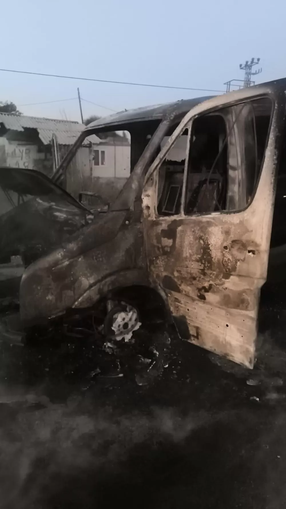Tur minibüsünün havalimanına yolcu almaya gittiği sırada yangının çıktığı öğrenildi.