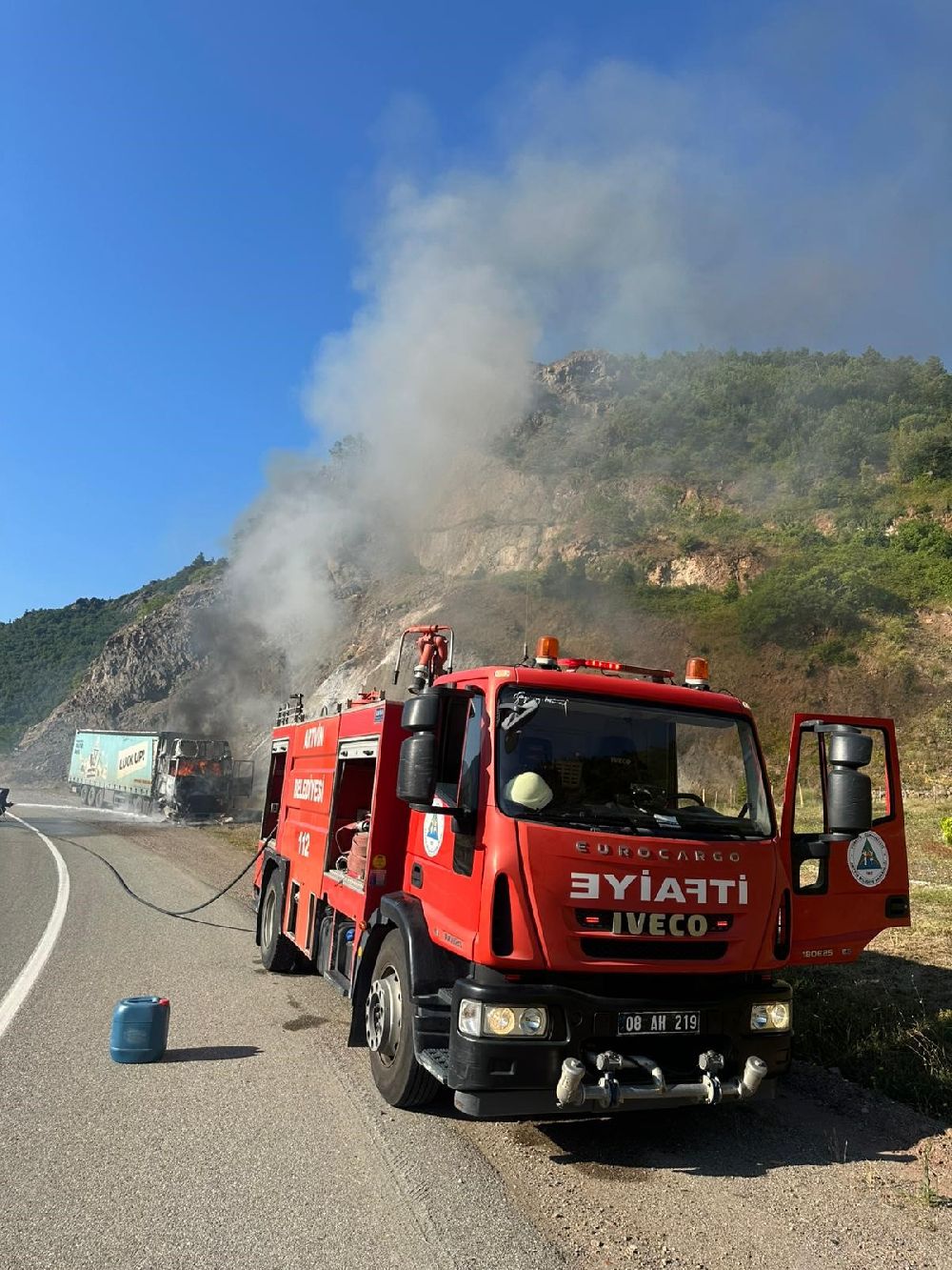 Edinilen bilgilere göre, Mikail Tatar yönetimindeki tır, Artvin-Borçka karayolunun 14. kilometresinde henüz bilinmeyen bir nedenle yanmaya başladı. Sürücünün durumu fark ederek aracı yol kenarına çekmesiyle birlikte olay yerine Artvin Belediyesi itfaiye ekipleri sevk edildi. Kısa sürede bölgeye ulaşan ekipler, alevlere müdahale ederek yangını kontrol altına aldı. Yangın söndürülürken tırda büyük çapta maddi hasar oluştu.