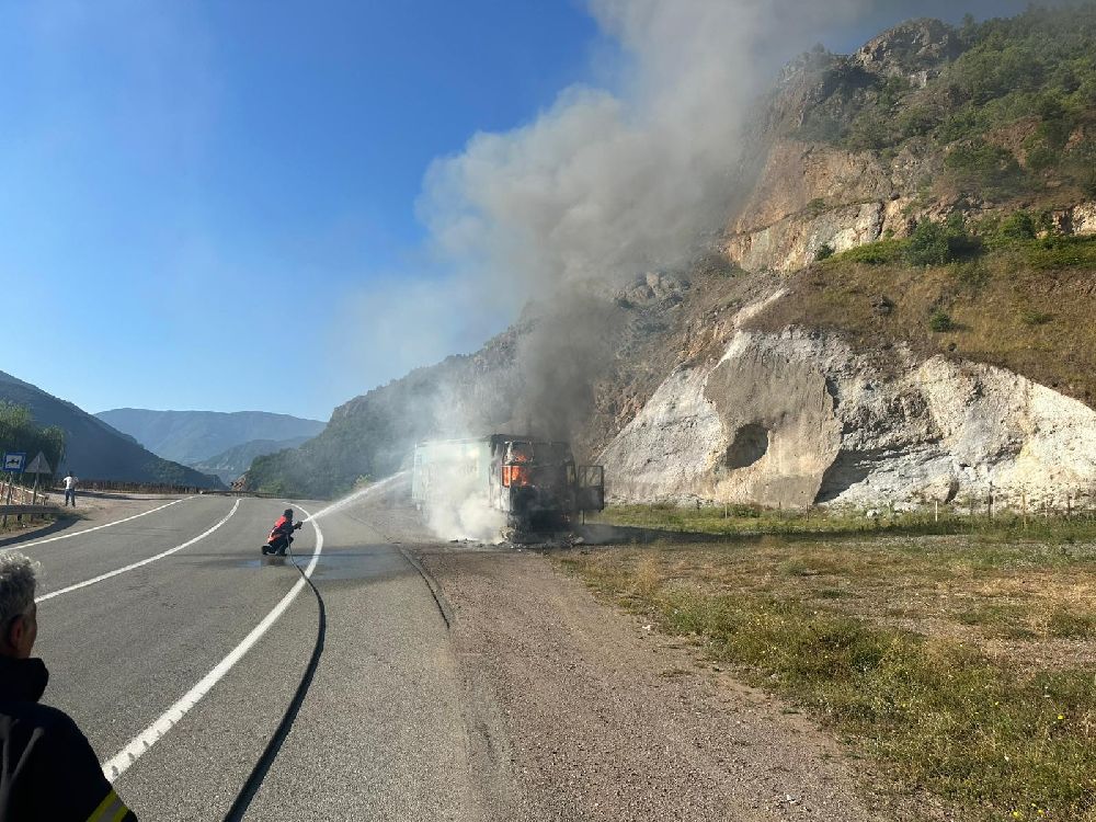 Artvin-Borçka karayolunda seyir halindeyken alev alan tır, itfaiye ekiplerinin müdahalesiyle söndürüldü. Yangın sonucu araçta büyük çapta hasar meydana geldi.