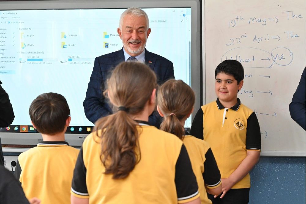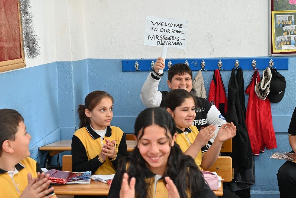 Belediye Başkanı Şükrü Başdeğirmen, 5. sınıftaki diğer şubeleri de ziyaret ederek, öğrencilerle sohbet etti. Öğrencilerle bir araya gelmekten duyduğu memnuniyetini ifade eden Başkan Başdeğirmen, "Güzel eğitimlerle güzel çocuklar olarak devletimize, milletimize faydalı bireyler olacağız" dedi.
