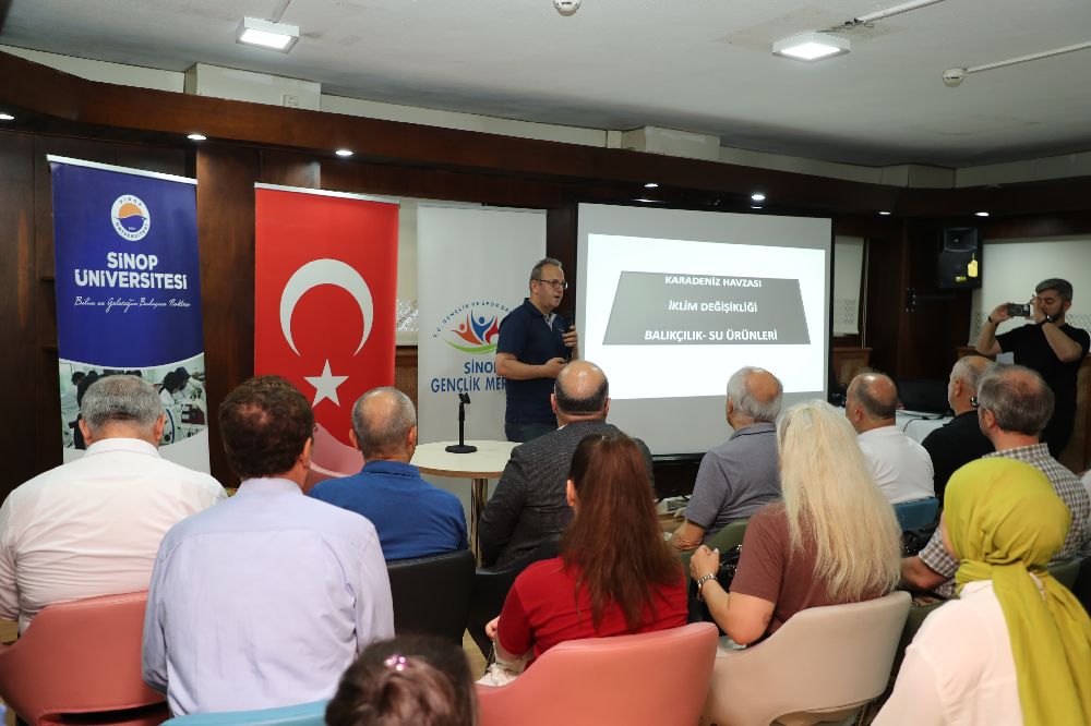 Türkiye’nin 81 ilinde eş zamanlı gerçekleştirilen Bilim Kafe etkinliklerinden biri de Sinop’ta yapıldı. Prof. Dr. Sabri Bilgin, Karadeniz’de iklim değişikliğinin balıkçılığa etkilerini paylaştı.