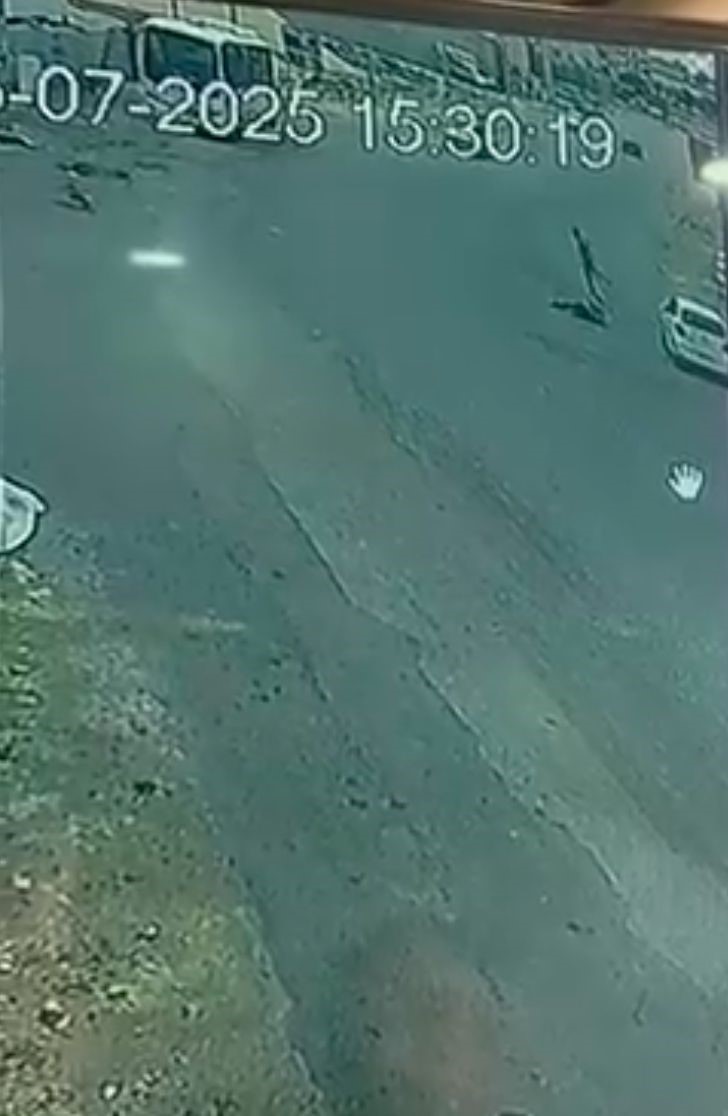 Olay anı çevredeki bir iş yerinin güvenlik kamerasına saniye saniye yansıdı. Görüntülerde yayaların yola çıkması ve otomobilin çarpması görülüyor.