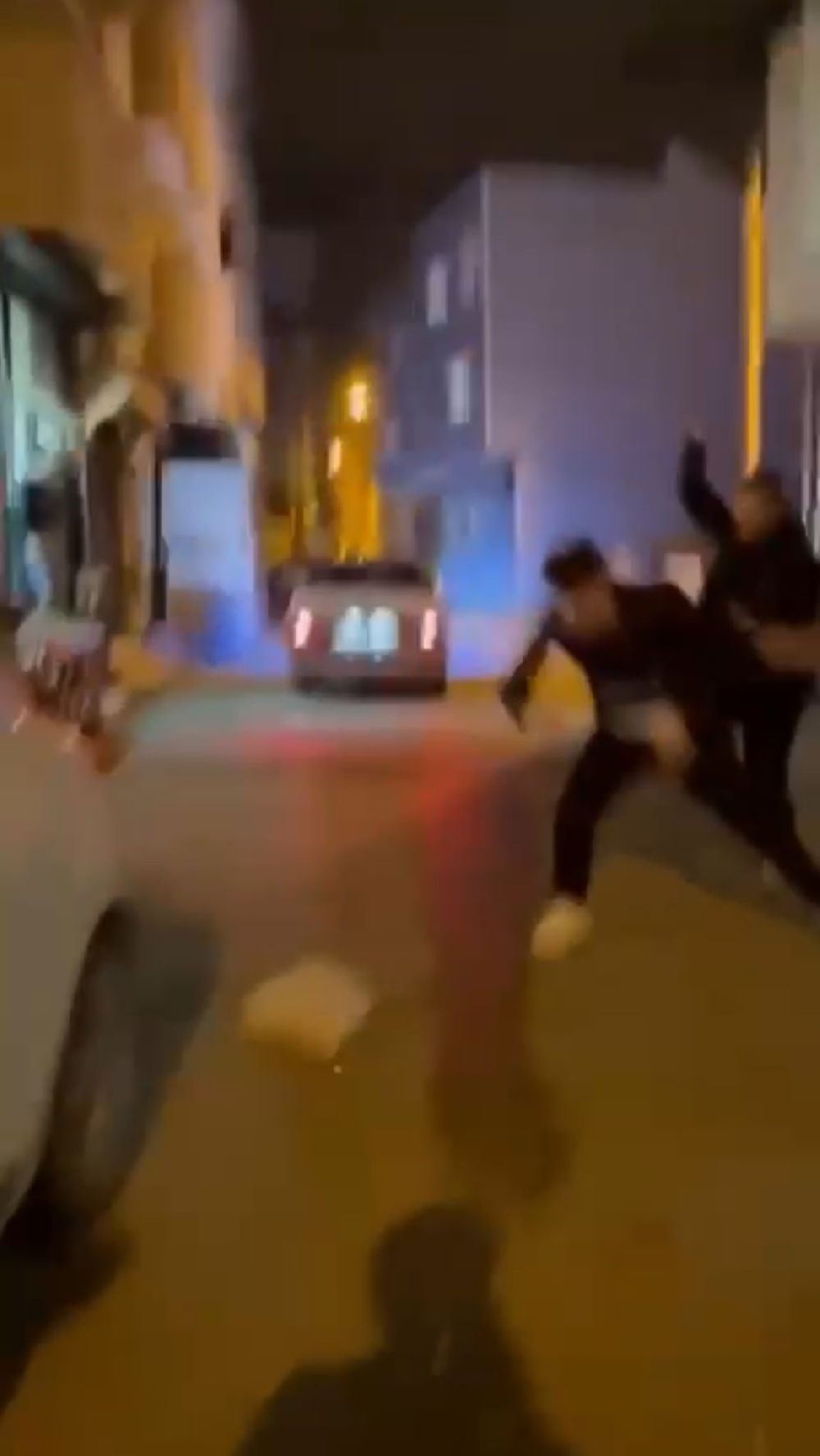 Bursa'da aralarında husumet olduğu iddia edilen 2 grup, sokak ortasında birbirine girdi. Sokağın boks ringine döndüğü anlar amatör kamerayla kaydedildi.