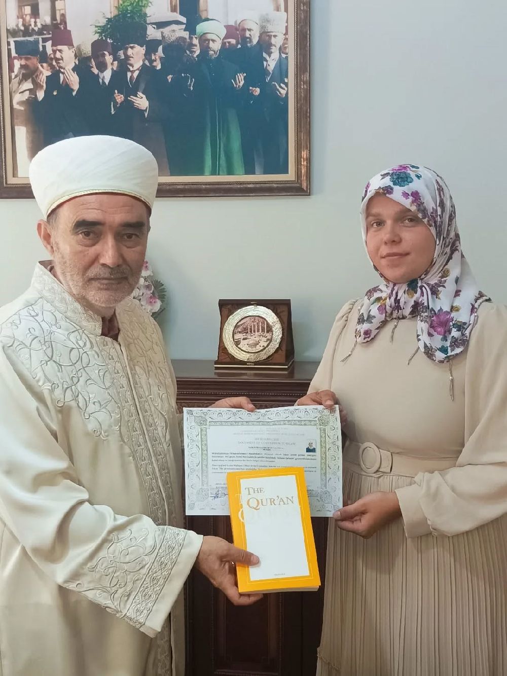 İhtida merasiminin ardından İlçe Müftüsü Ali Saim Doğru tarafından Muters'e ihtida belgesi' ile birlikte Diyanet İşleri Başkanlığı yayınlarından Kur’an-ı Kerim hediye edildi.