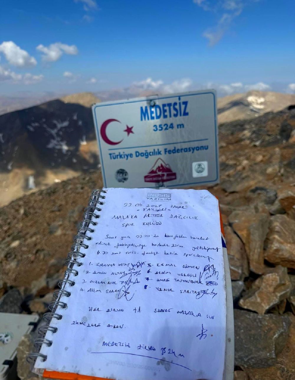 Etkinliğin ikinci gününde ise 3524 metre yüksekliğindeki Medetsiz Tepe zirve faaliyeti gerçekleştiren sporcular, burada zirve defterini imzaladı.