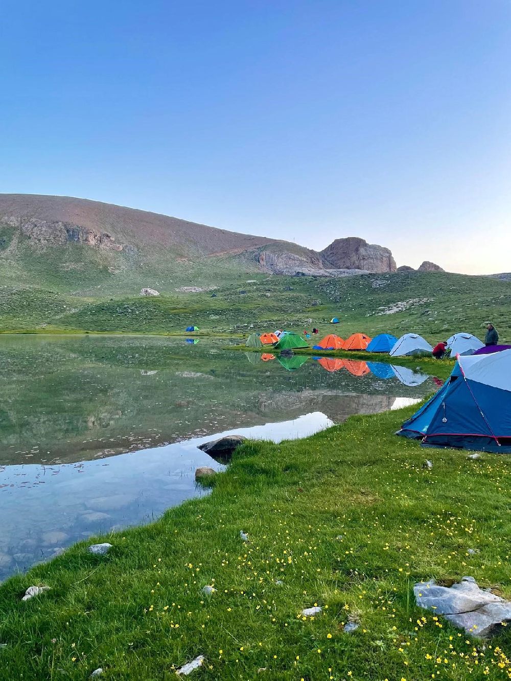 Meydan Yaylası'ndan Karagöl'e ulaşarak kamp kuran kulüp üyeleri, ilk gün Çini Göl'ü ve 2973 metre yüksekliğiyle dikkat çeken Pilot Tepe zirvesine başarılı bir tırmanış gerçekleştirdi.
