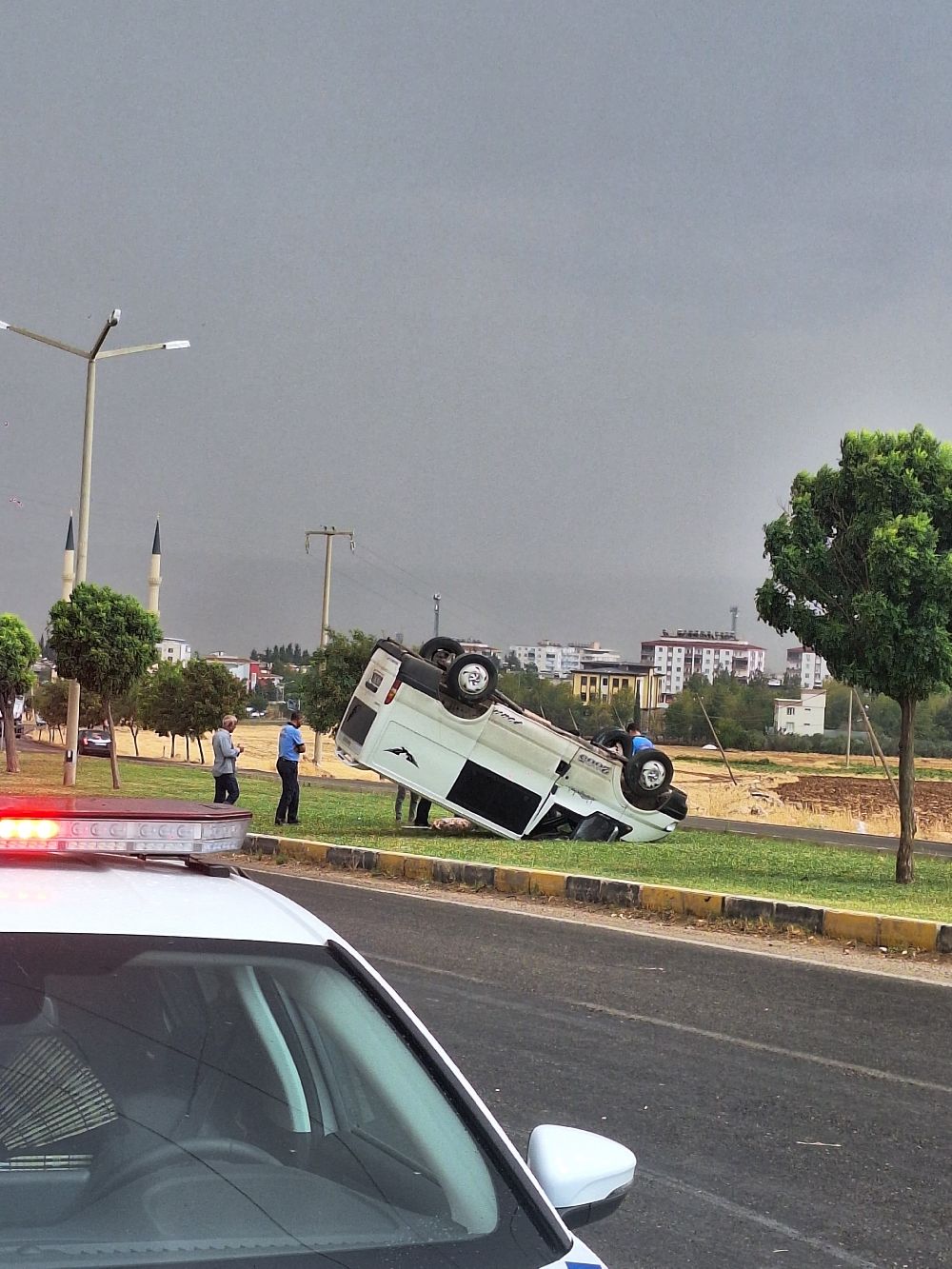 Gaziantep’in Yavuzeli ilçesinde ani bastıran sağanak yağış kazaya neden oldu. Yağış nedeniyle kayganlaşan yolda minibüs sürücüsü direksiyon hakimiyetini kaybederek aracıyla takla attı.