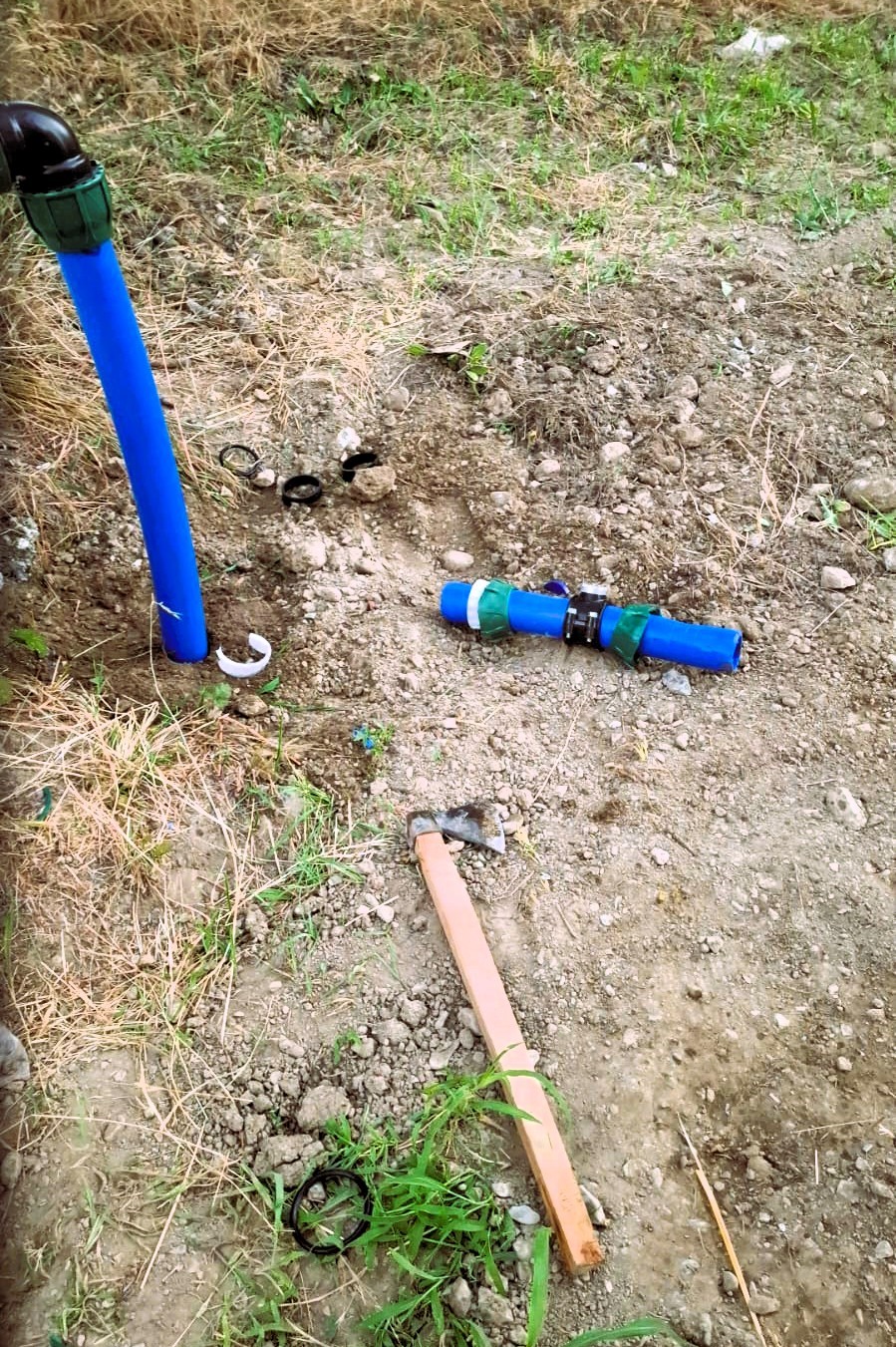 Denizli’nin Honaz ilçesinde tarlasından izinsiz sulama hattını geçirildiğini iddia eden çiftçi, boruları baltayla parçalayıp köy meydanına attı.