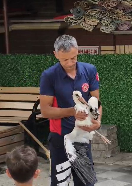 Tokat’ın Erbaa ilçesinde verandadan düşen tek ayaklı leyleği havada yakalayan itfaiye eri refleksi ile dikkat çekti.