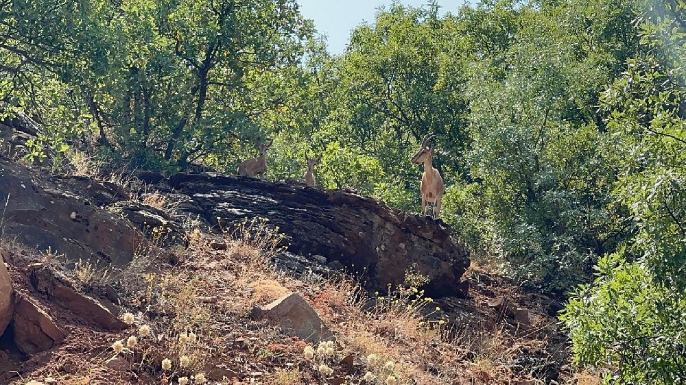Tunceli'nin Ovacık ilçe yolundaki ormanlık alanda, nesli tükenme tehlikesi altındaki dağ keçileri görüntülendi.