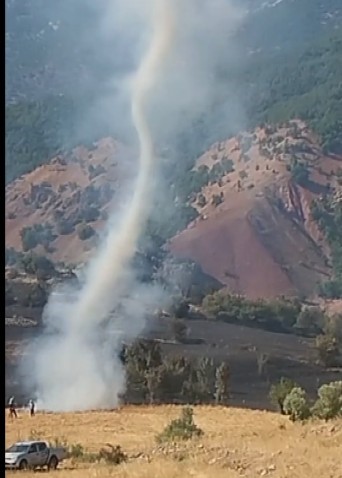 Tunceli’nin Hozat ilçesinde dün çıkan yangında hortum oluşurken o anlar cep telefonu kamerasına yansıdı.