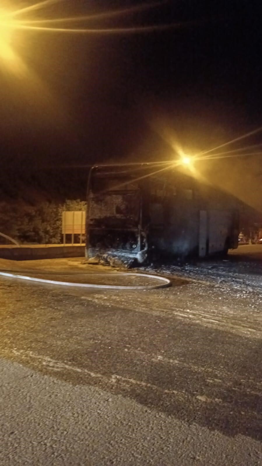 pleri alevleri kontrol altına aldı. Otobüsü saran alevler kontrol altına alınırken, araç ise kullanılmaz hale geldiği görüldü.