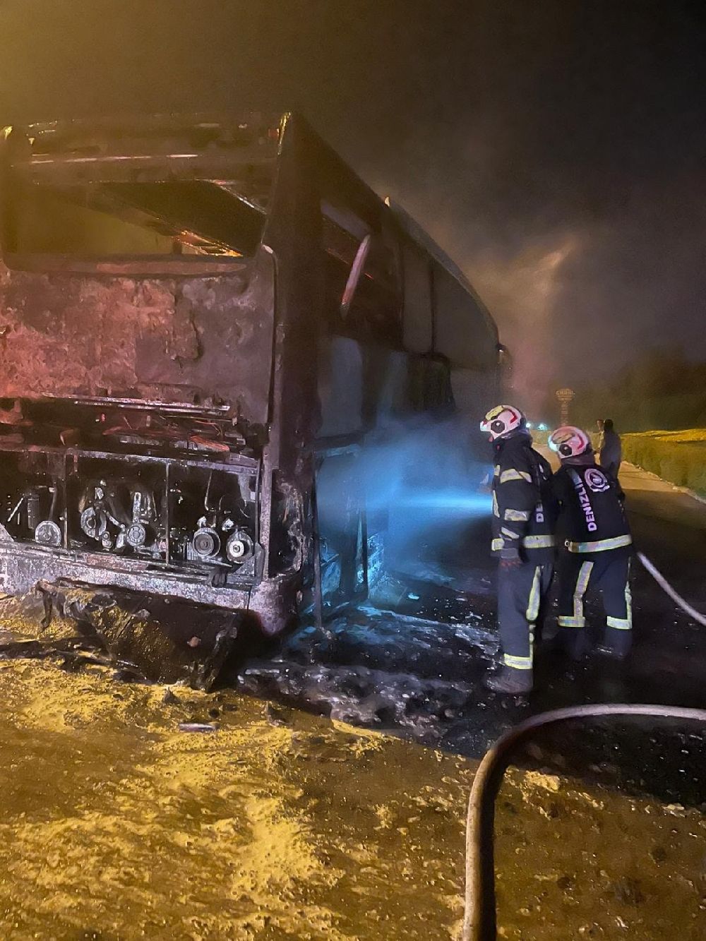 - Denizli'de seyir halindeki tur otobüsü alevler içerisinde kaldı. İtfaiyenin müdahalesiyle söndürülen yangında otobüs kullanılamaz hale geldi.