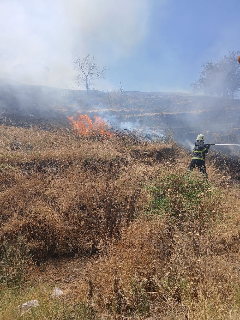 Hem havadan hem de karadan yapılan müdahaleler sayesinde yangın kısa sürede söndürüldü. Olabilecek bir felaketin önüne geçerek vatandaşlara rahat bir nefes aldıran ekipler, bölgede soğutma çalışmalarını sürdürüyor.