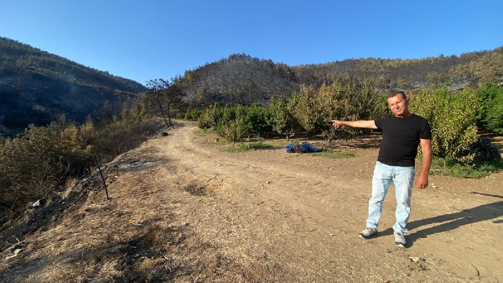 Köylerinin tahliye edildiğini ancak bırakıp gitmediklerini belirten Kiraz, "İtfaiye ekipleriyle, belediyelerle birlikte bizde köyümüzü savunduk. Benim bu arazime yangının ulaşmaması, çevresini yol ile çevirmemden kaynaklı olduğunu düşünüyorum. Benim bahçem ve yanımdaki bahçe gerekli bakımları zamanında yaptığımız için yem yeşil kaldı. Bu araziyi Allah korudu. Çiftçilerimiz arazilerin çevresinde böyle alanlar bıraksın. Faydasını gördük. Birkaç ağaç eksik olması hepsinin kurtulmasına vesile oldu. Sulama borularımız zarar gördü. Ancak canımız, köyümüz kurtuldu. O kadar zararı düşünmüyoruz" dedi.