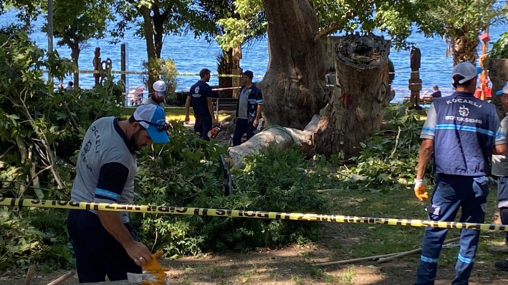 Olay, 6 Temmuz'da Yalı Mahallesi Saniye Altun Caddesi'nde meydana geldi. Tarihi anıt çınardan kopan büyük bir dal, o sırada altında oturan Seda Karakol (18), Erdem Ulak (29) ve bir kişinin üzerine düştü. Çevredekilerin ihbarı üzerine bölgeye itfaiye, polis, sağlık ve Gölcük Arama Kurtarma Ekibi (GESOTİM) sevk edildi. Ekiplerin çalışmasıyla dalın altından çıkarılan yaralılar, ilk müdahalelerinin ardından hastaneye kaldırıldı.