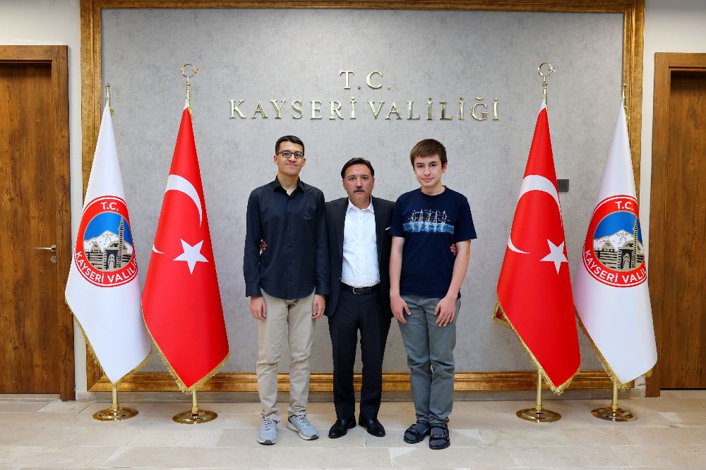 2025 Yükseköğretim Kurumları Sınavı (YKS) Sayısal Türkiye 29’uncusu, Kayseri 2’ncisi Ahmet Faruk Yurdakul ile 2025 Yükseköğretim Kurumları Sınavı (YKS) Sayısal Türkiye 3’üncüsü, Kayseri 1’incisi Hafız Ahmet Yasin Ekmen’i makamında kabul eden Vali Gökmen Çiçek, "Sınavda göstermiş oldukları başarı ile bizleri gururlandıran gençlerimizi, öğretmenlerimizi ve ailelerini tebrik ediyorum" dedi