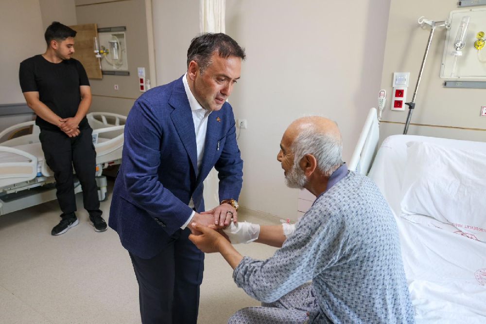 Hastalara geçmiş olsun dileklerini ileten Vali Sözer, sağlık durumları hakkında yetkililerden bilgi aldı. Ziyaret kapsamında, şehit Yücel Gökçe'nin babası Mustafa Gökçe'yi kaldığı serviste ziyaret eden Vali Sözer, geçmiş olsun temennilerini iletti.