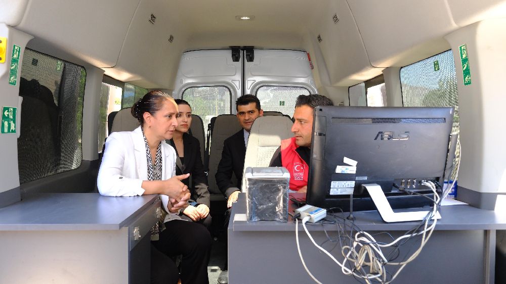Vali Baydar Bilgihan, daha sonra Mobil Göç Noktası İstasyonu'nu ziyaret ederek, göçmen işlemleri ve yürütülen hizmetlere ilişkin yetkililerden bilgi aldı.
