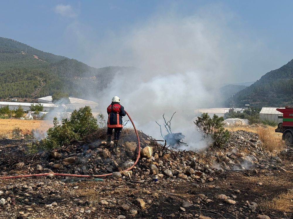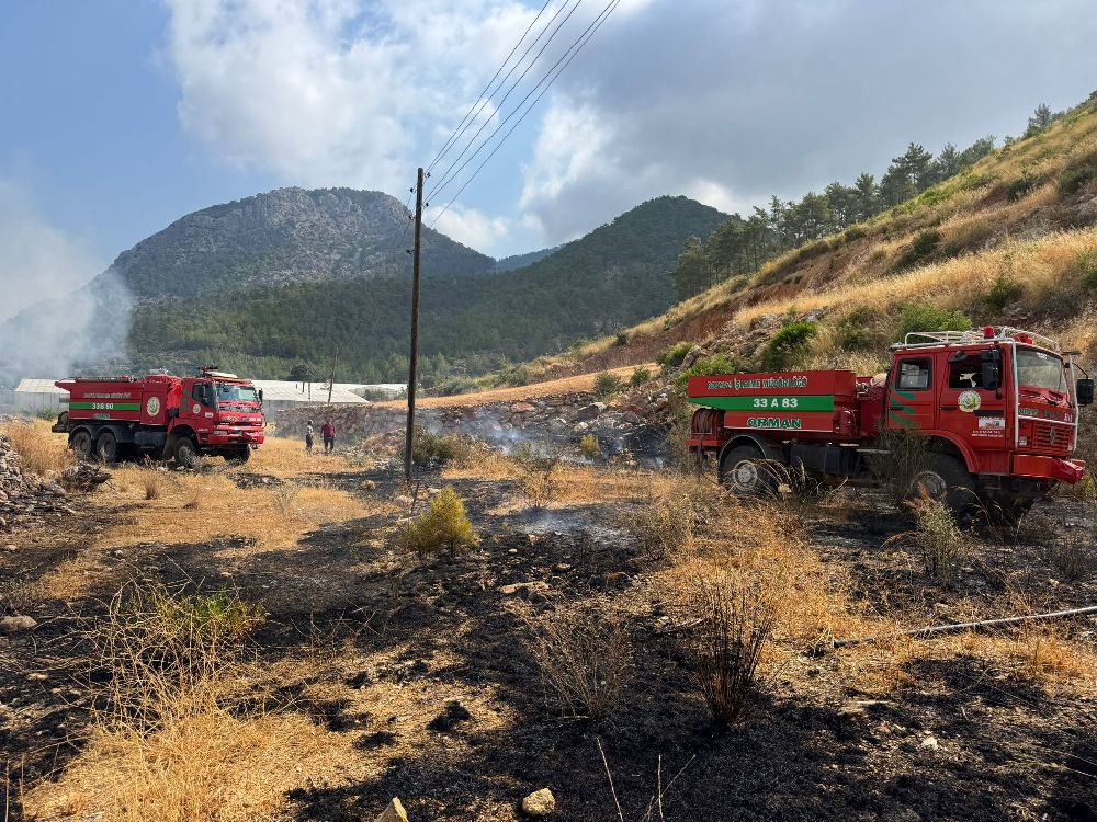 Mersin'in Bozyazı ilçesinde arazide çıkan yangın ormana sıçramadan söndürüldü.