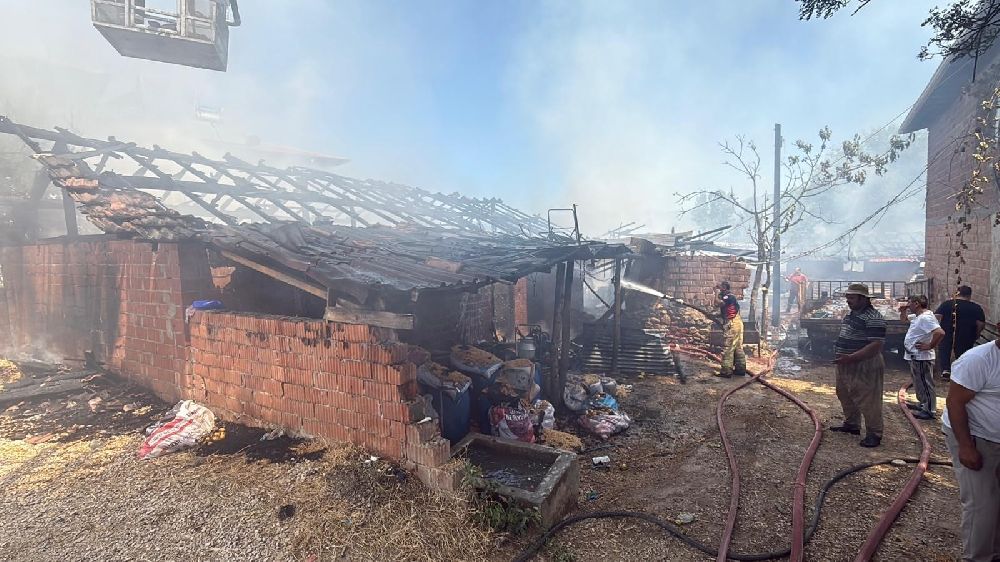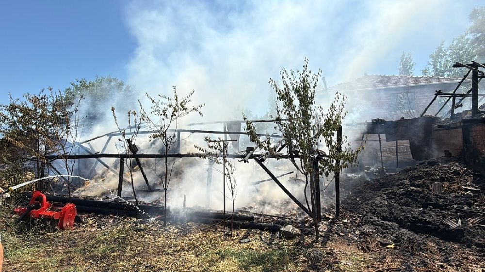 Tokat'ın Erbaa ilçesinde bir samanlıkta başlayan yangın ahıra sıçradı, 7 büyük baş hayvan telef oldu.