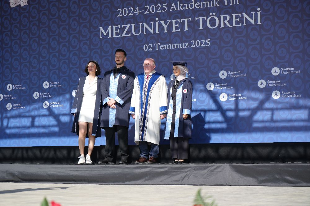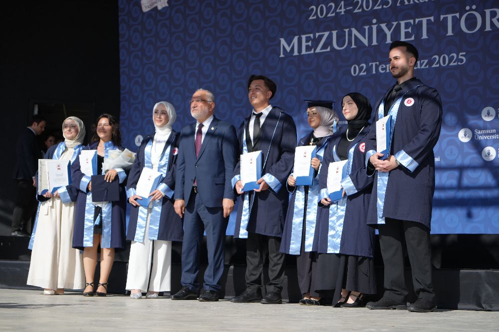 SAMÜ 2024-2025 Mezuniyet Töreni, Canik ilçesinde bulunan Doğupark Amfi Tiyatro'da velilerin yoğun katılımı ile yapıldı. 5 fakülte, 1 yüksekokul ve 1 meslek yüksekokuluna bağlı toplam 29 bölüm ve programdan 459 öğrenci mezuniyet sevinci yaşadı. Üniversite birincisi, fakülte birincisi, bölüm birincisi olan Yemenli Malak Gibreel Sadeq Suleiman Al-Aghbary törende yaptığı konuşmada, "Başarı sadece notlarla, projelerle, derecelerle ölçülmez. Gerçek başarı; yaşadığımız zorluklara rağmen yolumuza devam edebilmek, öğrendiklerimizi insanlığın ortak iyiliği için kullanabilmektir. Benim ait olduğum bölüm olan Biyomedikal Mühendisliği Bölümü'ndeki tüm değerli hocalarıma en içten teşekkürlerimi sunuyorum. Ayrıca Türkiye Cumhuriyeti ve Türk halkına kalpten teşekkür ediyorum. Yalnızca bana değil, umutla gelen herkese kapılarınızı açtınız. Bu ülke bana yalnızca bir eğitim değil, ikinci bir yuva verdi" dedi.