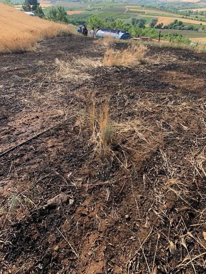 Kopan hattın ateşe verdiği tarla, köylülerin müdahalesiyle kurtarıldı